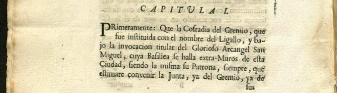 El primer capítulo de las ordenanzas de 1754 establece que la cofradía estaba instituida “bajo la invocación titular del glorioso Arcángel San Miguel, cuya basílica se halla extramuros de esta ciudad”[1]. Aquella ermita de San Miguel era su sede espiritual y también su punto de reunión. El arcángel, asociado tradicionalmente a la justicia y la defensa del bien, fue considerado su patrón protector, mientras que la basílica actuaba como símbolo material de esa tutela.
